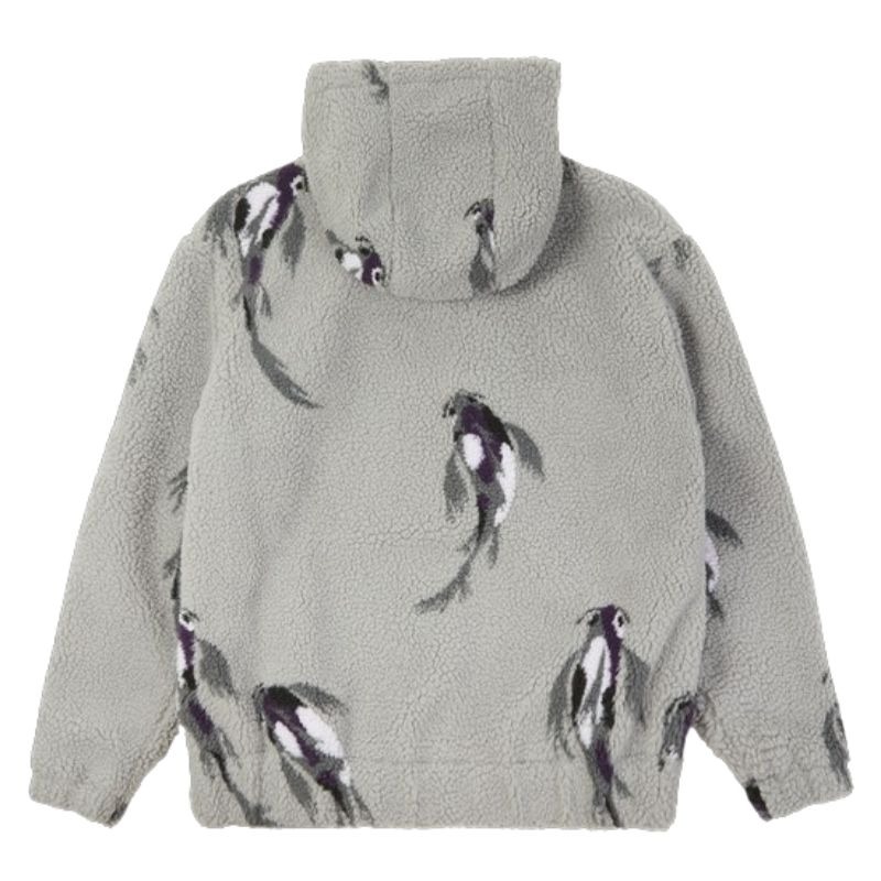 • Gray sherpa zip-up hoodie with koi